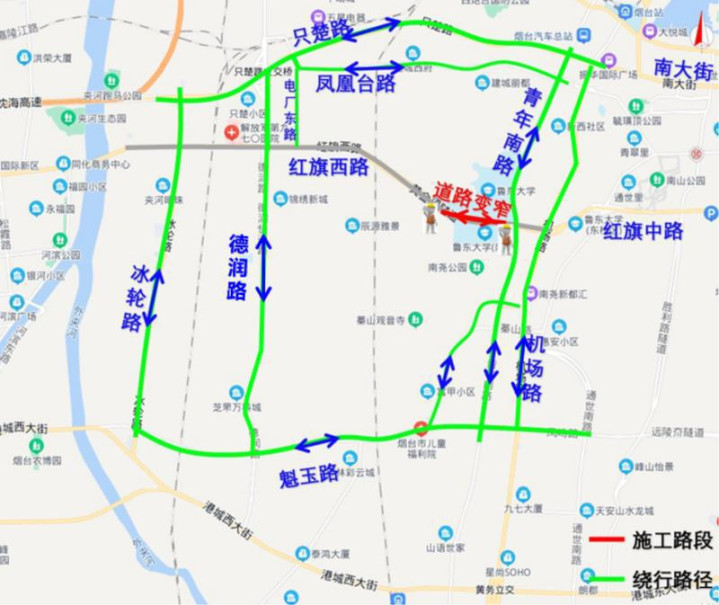 烟台融媒1月27日讯(YMG全媒体记者杨春娜)记者从中建三局集团有限公司烟台市城市快速路塔山北路(黄金顶隧道西出口-山海路)建设工程PPP项目第一项目经理部了解到,因烟台市城市快速路红旗西路匝道工程施工需要,对红旗西路(鲁东大学过街天桥至黄金顶隧道东口)分阶段占用道路进行施工。2026年2月3日施工将进入第二阶段,交通导改为双向4-5车道通行,部分点段导改为双向4车道通行。施工时,施工路段道路变窄、车道数减少,车辆行驶缓慢。请过往车辆提前规划路线、选择周边道路绕行,遵守交通标识,服从现场工作人员指挥。